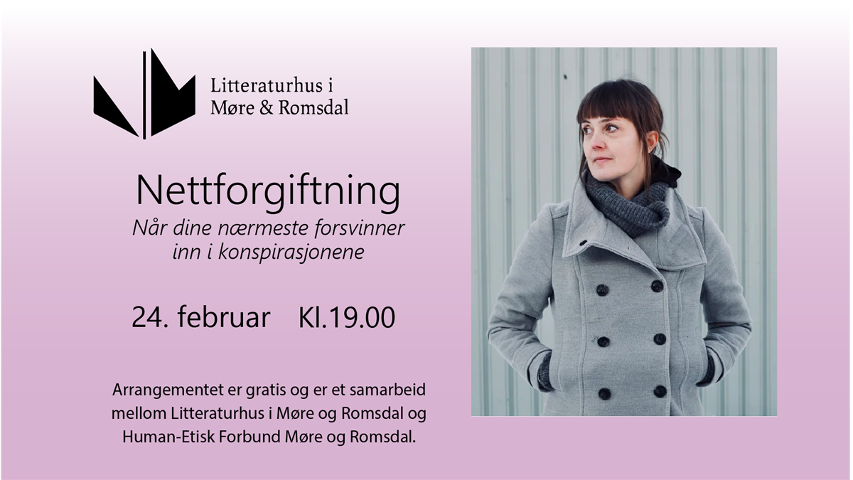 Human-Etisk Forbund Møre og Romsdal har gleden av å invitere Siw Aduvill til fylket. Sammen med Didrik Søderlind har hun skrevet boka Nettforgiftning. Her følger de mennesker som har opplevd at de de er glade i har forsvunnet i dragsuget av konspirasjonsteorier og ekstremisme på nett.