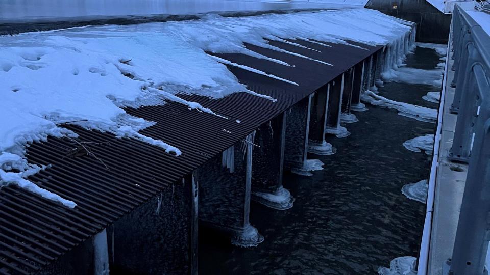 Tilsyn på fiskesperra Godt nyttår! Det er stille og rolig (og kaldt!) om dagen. Som en del av rutinene, har jeg tilsyn ca hver 3. uke i fiskesperra.