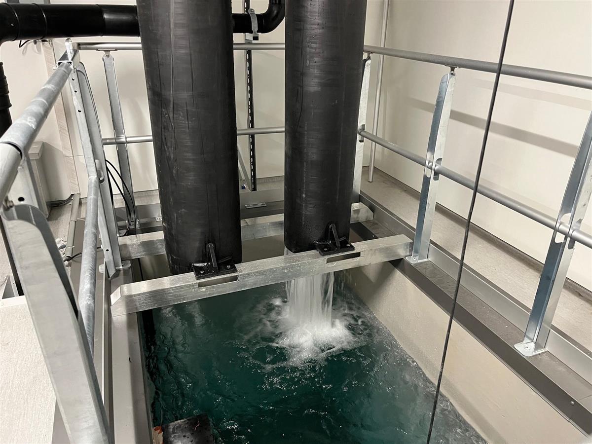 Rent og stabilt grunnvann inn i bygget. Vannet ligger på 4.9 grader hele året.