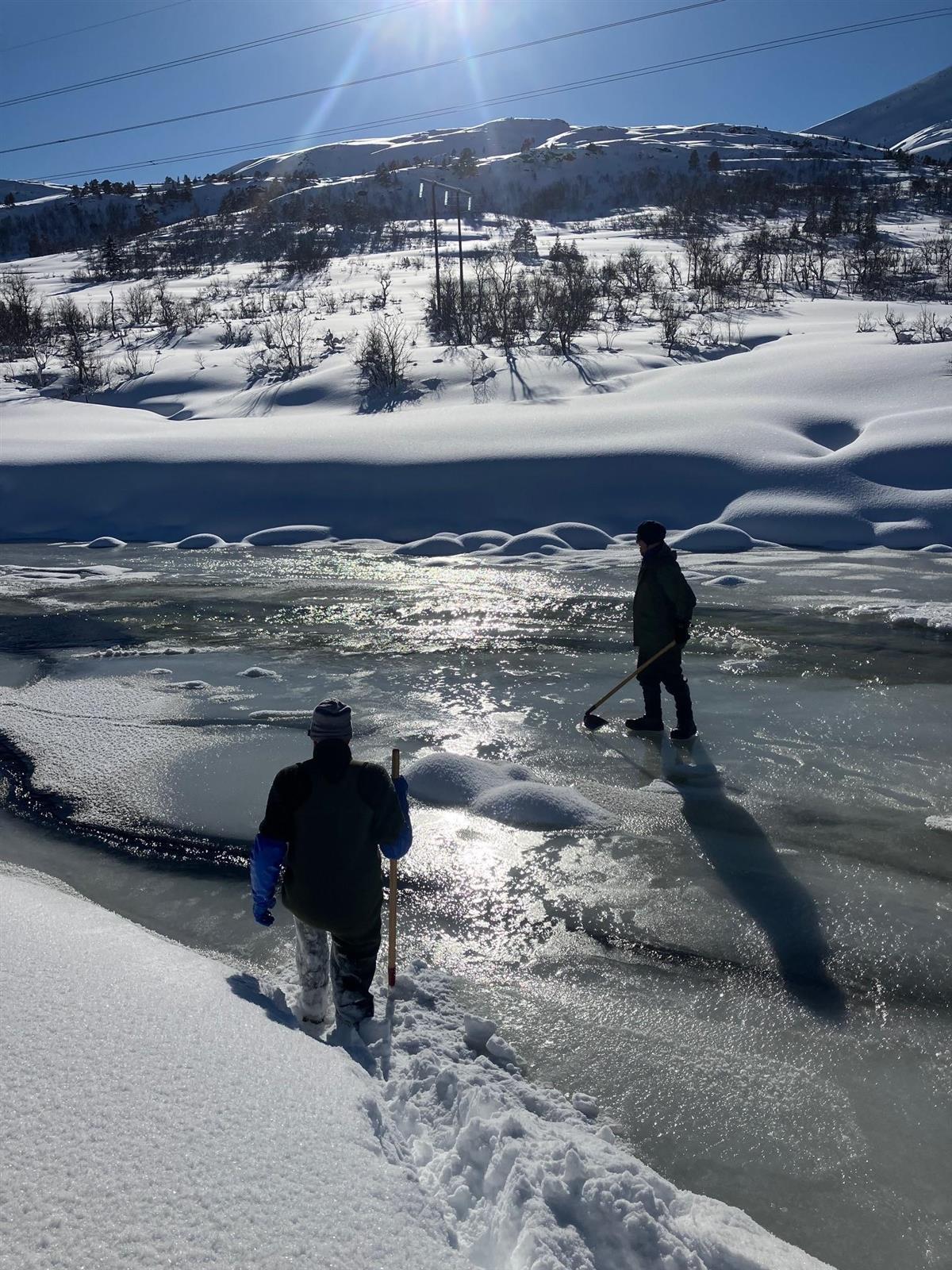 Rognplanting i Batnfjord Torsdag 9. mars gjennomførte Veterinærinstituttet, lokal koordinator og flere frivillige fra Batnfjorden rognplanting av overskuddsrogn i Batnfjordselva på ikke-anadrom strekning. Ti bokser med overskuddsrogn fra sjøørret ble satt ut på forskjellige steder i vassdraget. Dette ble nok en fin dag med godt samarbeid mellom aktørene og de frivillige. Hele gjengen samla og klar før rognplantinga skal settes i gang. Inger Helene Sira Med oss fra Batnfjord var Egil Magne, Arild og Nils Martin - hvor de to sistnevnte stilte med henholdsvis snøskuter og ATV med belte for å frakte folk og utstyr til fjells. Det var snødd veldig mye, men det gikk greit å plante ut rognboksene i elva. Det kjennes veldig meningsfullt ut å få hjem rogn til elva fra genbanken og dermed få en kick-start på reetableringa og sjøørretbestanden. Ellers traff været til og gjorde dagen ekstra fin for oss som var med. Klar til utsett av rogn! Inger Helene Sira De lokale ytte som vanlig god service og Arild og Nils Martin hadde vært der dagen før og kjørt opp spor fra Åndal og til fjells. Det er en del utstyr og folk som skal fraktes, så sporet ble avgjørende for dagen. Da vi kom opp tok halve gjengen på vadebukser, mens resten av oss måtte bruke ski og truger for å frakte rogn og krafse rundt til de som stod i elva. Det er veldig viktig at rognkassene får stå i fred i elva. Dersom du ser noe gult i elva, ikke ta det opp, da er det sannsynlig at det er en rognboks. Boksene vil tas opp igjen på slutten av sommeren, og da vil man kunne si litt om hvor vellykka utsettet ble. Verdigfulle rognkorn klar til planting! Inger Helene Sira Arild graver hull, mens rogna står i vann på land. Inger Helene Sira Fire rognbokser klare for elva. Inger Helene Sira Publisert av Inger Helene Sira Sist endret 13.11.2024 08:33
